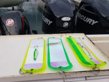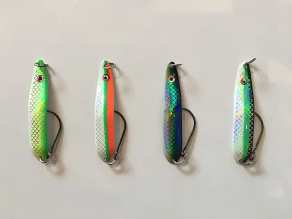 This time of year, we primarily like to run spoons that immitate the sticklebacks, herring and anchovies that are in the offshore waters off the South End of Bowen and the Gulf Island's. Gibbs Delta Trailhead, Bon Chovy, Herring Aide and No Bananas spoons (Skinny G and G Force) are solid colours this time of year. Silver Horde spoons in the same size range in the Killy Mcgee, Irish Cream and the Kitchen Sink patterns are good bets as well. Try trolling these spoons between 80 feet and 160 feet on Vancouver side, and 120 to 180 feet on the Gulf Island side.
