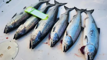 Sidney has also been productive on our charters in recent weeks. We have been enjoying some good action only a few minutes from our dock location at Port Sidney Marina. When the water has been calm, we have ventured a little further out in to the Straits and been rewarded with some great results. Skinny Gs and Coho Killers have been very good as usual. Come visit us in Sidney, the fishing grounds are close and the waters are usually calm!